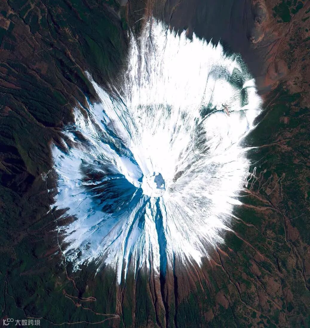 富士山是一座活火山,也是日本最高的山峰,高 3776 米。鸟瞰富士山时,它呈现出一个极其规整的圆锥体,这里一年中有几个月的时间都被皑皑白雪覆盖,在温暖的月份中,游客们可以沿着登山路线上山。