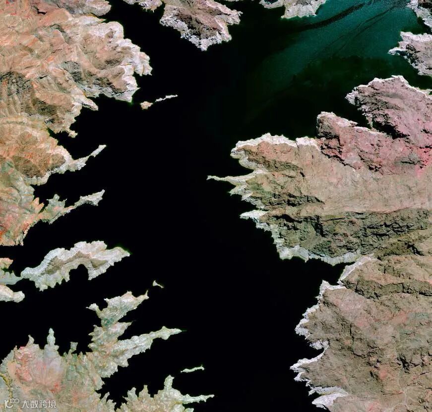 米德湖位于美国内华达州,在拉斯维加斯东南 39 公里处,20 世纪 30 年代由科罗拉多河上的胡佛大坝拦蓄而成,是美国最大的水库。由于近些年来周边各州干旱以及用水需求的增加,湖水水位急剧下降,2015 年创历史最低点 328 米。