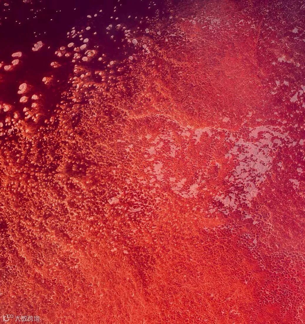 纳特龙湖位于坦桑尼亚北部,湖水深度不足3 米,宽度随着水位变化而变化。旱季时候,湖水蒸发速度加快,含盐度增加,湖水中一种耐盐藻类开始大量繁殖,并产生光合色素,湖水颜色变成深红色。