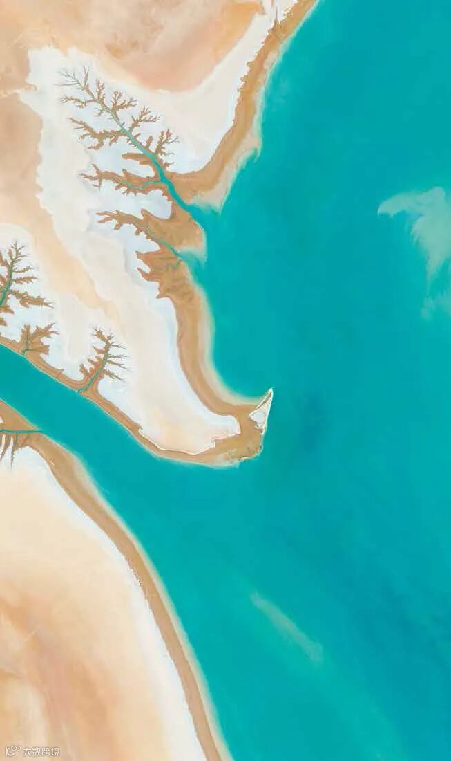 沙代甘潟湖位于伊朗穆萨湾,四周环绕着树枝状的排水系统,当水流穿过相对平坦的地面时,地表便会被侵蚀出一条条的“支流”。