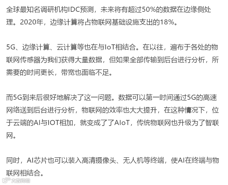 与云计算要求将数据传输到云端进行计算再返回不同的是,边缘计算的特点是直接在本地终端等实现计算。边缘计算的优势在于无需将所有数据上传,因而可以快速反应,这对于车联网、VR/AR等需要实时计算的场景而言是必需的。同时边缘计算可以降低对中心云的压力,而成本仅为单级云的39%。