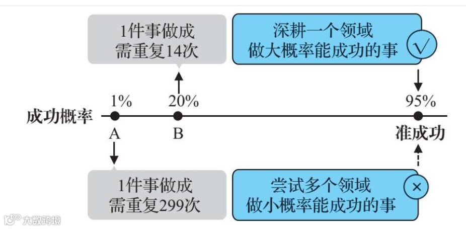 那想达到100%的成功概率呢?对不起,这个世界上没有100%的成功概率,所有人想要做成事,都需要一点点运气。我们经常说“正确的事情,要重复做”,这其实就是概率论的通俗表述。所谓“正确的事情”,指的就是大概率能成功的事情。
