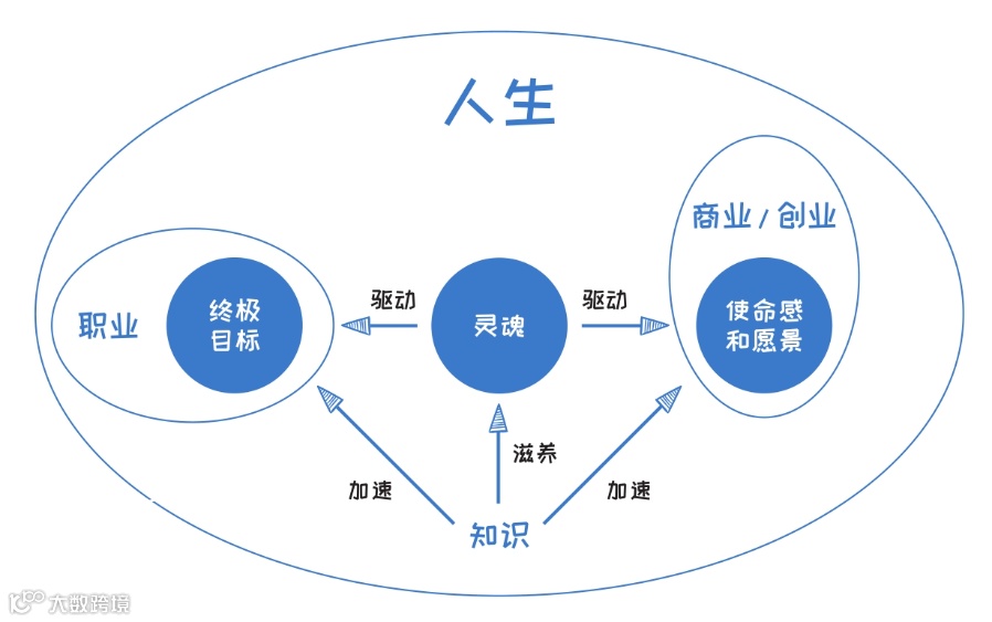 1.“人生”是最大的命题,人终其一生,是为了找到自我。2.职业和商业(创业)都是实现自我的方式,由灵魂驱动。3.知识会加速人生的自我实现,同时滋养灵魂。4.知识的无边界和对人生理解的无边界,才会不断扩大职业与商业的外围。