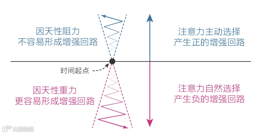 为什么这么说?因为生命是个复杂的系统,好坏自有其运行之道。《系统之美》一书的作者德内拉·梅多斯告诉我们,世界上有一个底层的系统规律叫“增强回路”,它的发生就好比两个小孩子发生了争执,一个人打了一拳,另一个人就更用力地踢一脚,他们每一次的反应都会强化矛盾,升级暴力。注意力的使用同样遵循这个规律,最初的选择会影响行为自动增强的方向。