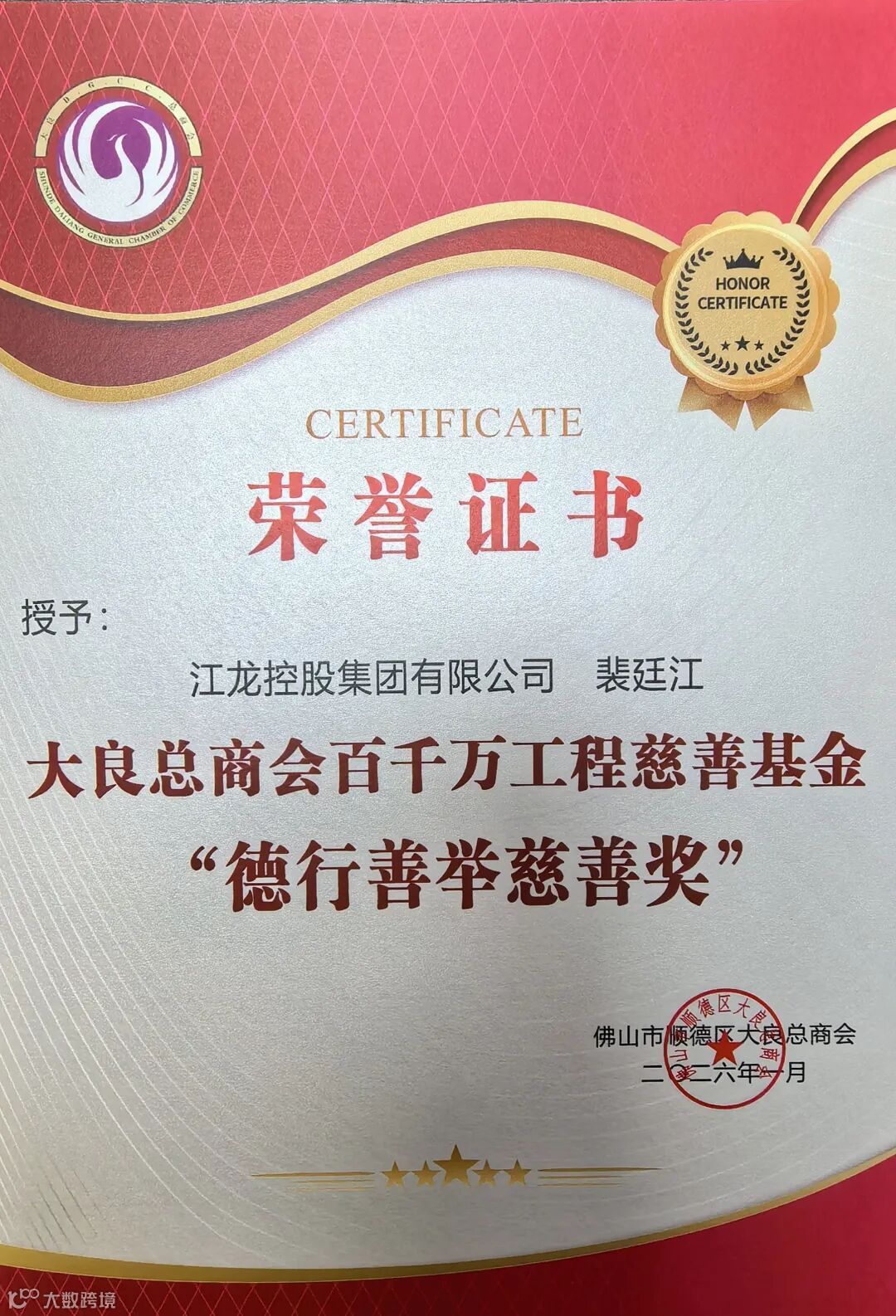晚宴现场,大良总商会对在慈善公益领域做出突出贡献的企业和个人进行了表彰。我司董事长以其多年来在教育扶助、医疗支援、社区建设等多领域的持续慈善投入,获得了评审委员会的一致认可。