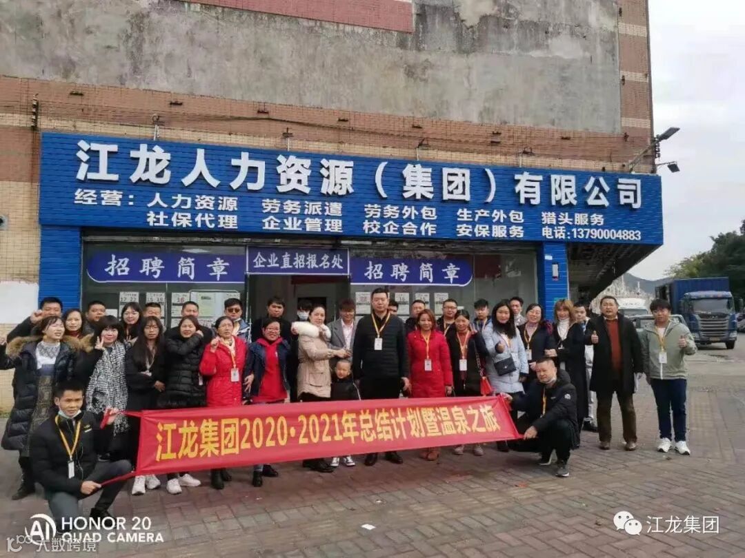 2021年1月10日,冬日暖阳,下午14:00广东江龙人力资源集团有限公司的集团行政人事部应集团董事长裴廷江的指示,组织各分公司和职能中心各部门共30多人核心骨干在江门恩平进行了2天1夜的温泉之旅和2020年工作总结和明年的规划大会活动