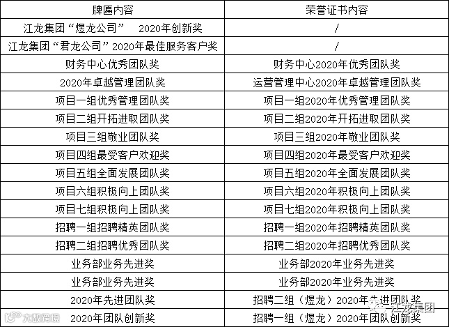 由董事长裴廷江先生给各个优秀团队进行颁奖仪式,颁奖明细:
