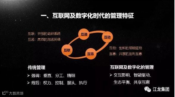 互联网及数字化时代的管理特征是互联互通互助互惠的。