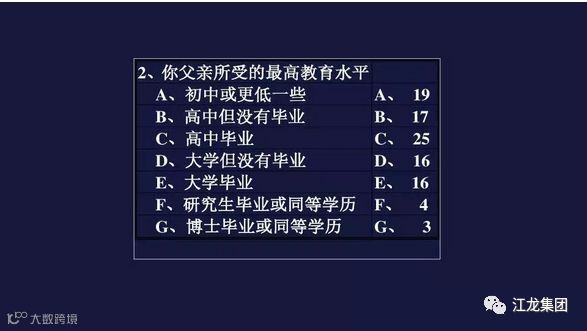 如果你需要找一个领导者,看了上面几个统计后,一个已婚的,父亲是高中毕业的,父亲是手艺人,母亲是职员或速记员的长子或长女,儿童时期家庭状况一般的候选人是不是更容易被你选用?