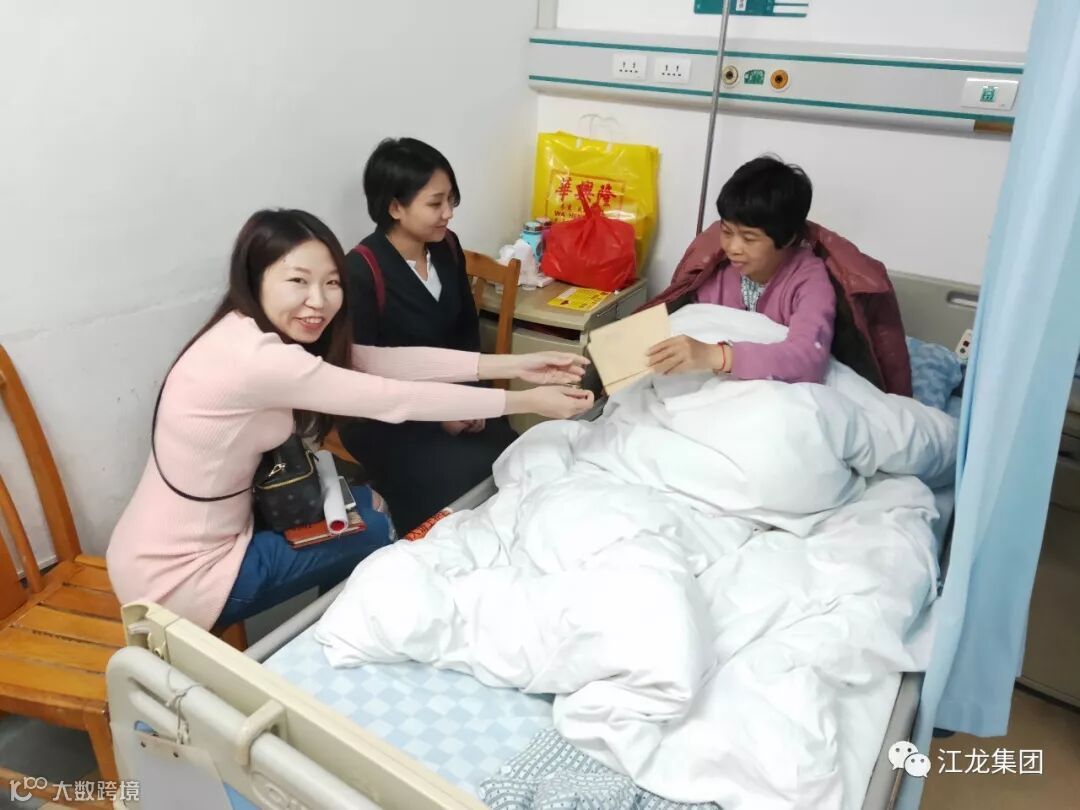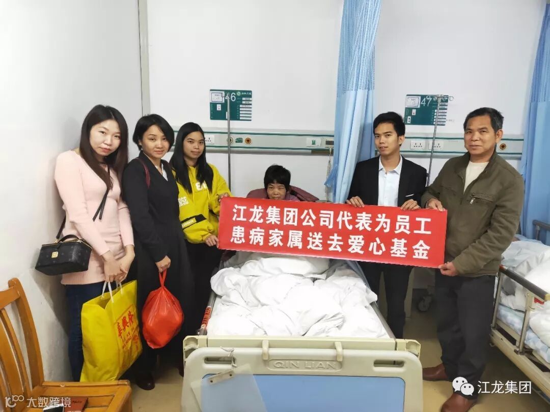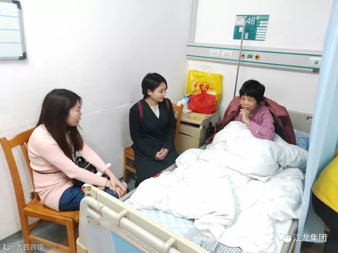 公司领导得知这件事后,非常重视,立刻从爱心基金支付了一笔费用,让放心打工网的麦经理以及总经办总助卢小姐一起买上补品赶赴清远人民医院看望邓家俊的妈妈,给病人传递江龙公司的人文关怀。