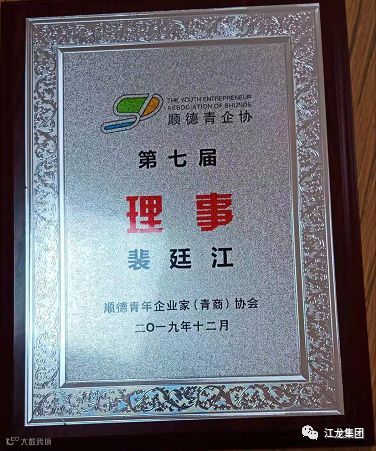 广东江龙董事长裴廷江获得顺德青年企业家(青商)协会理事