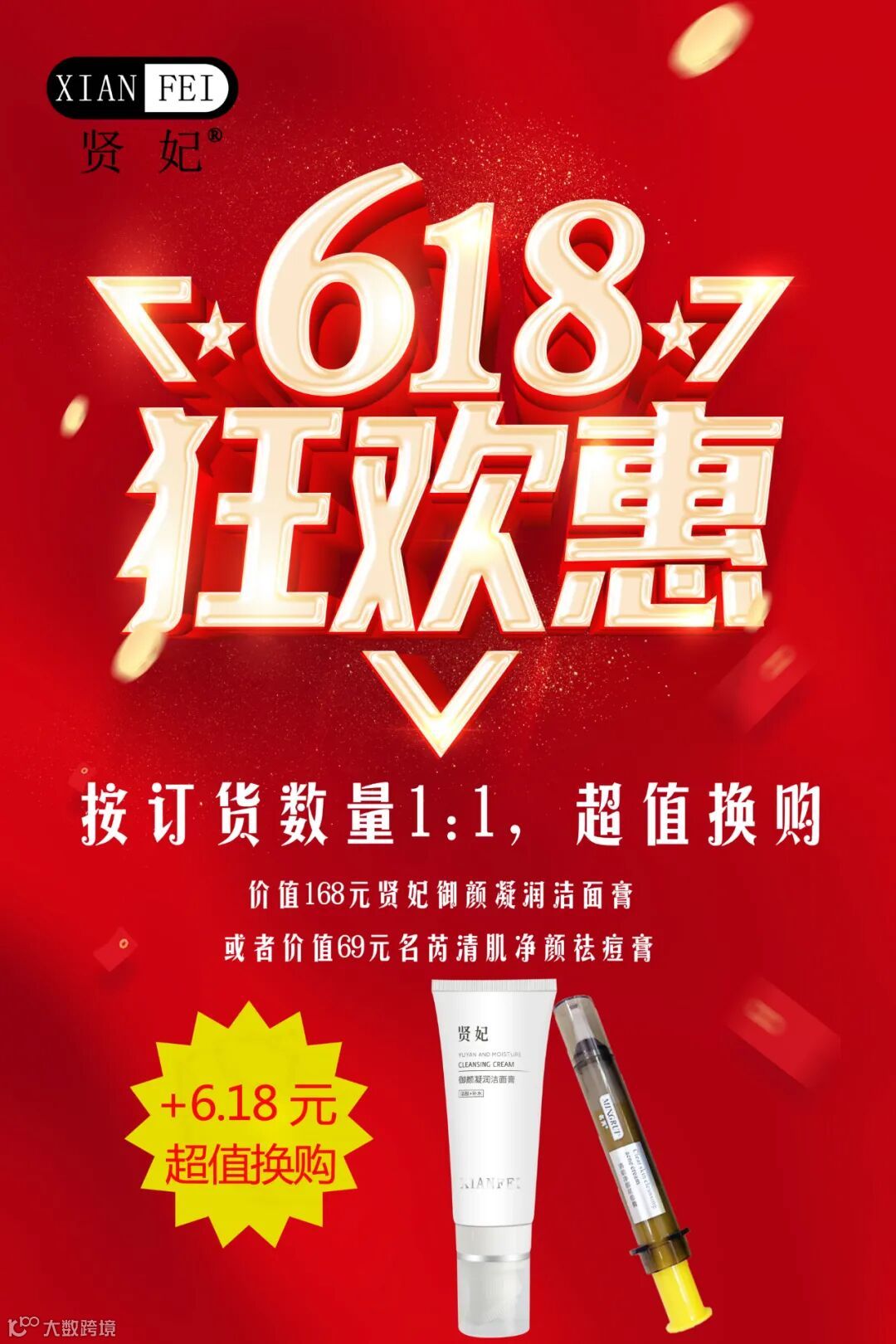 6月1日-6月20日,下单贤妃 名芮 莎丽贝特护肤品牌,按订货数量1:1,+6.18元换购以下产品: A:价值168元 贤妃谷胱甘肽御颜凝润洁面膏 B:价值69元 名芮清肌净颜祛痘膏10g