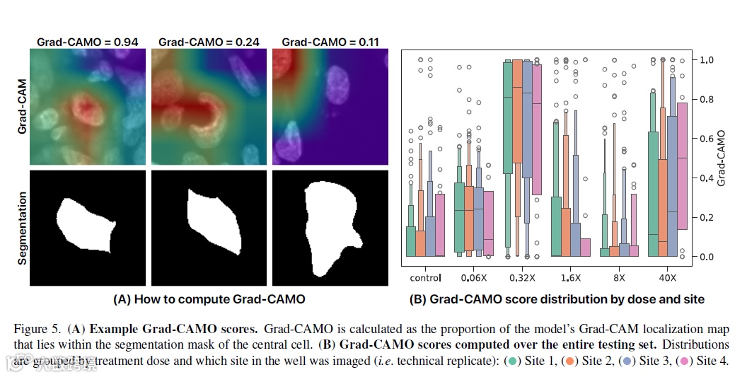Grad-CAMO Scores 评估结果显示 Grad-CAMO 分数为 0.94(Figure 5A);所有样品测试结果的平均 Grad-CAMO 分数为 0.26 ± 0.34(Figure 5B)。