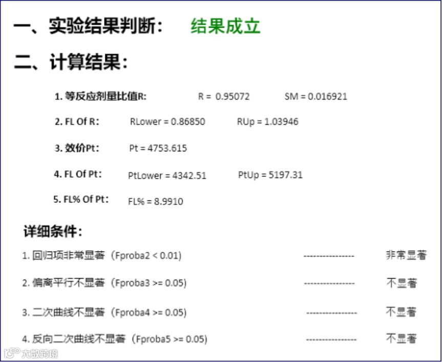 综上所述,SoftMax Pro 7 软件具备专业的高级统计学分析的能力,不仅支持自由模型和约束模型拟合进行平行性检验,还能完成方差分析和可靠性检验的各种复杂公式的运算,帮助实验人员高效的完成肝素产品生物效价的测定。而且,SoftMaxPro 7 软件是集仪器控制、数据采集及数据分析于一体的合规软件,不需要将读板数据导入或输入到第三方软件进行统计分析,规避了数据安全性和完整性的审查风险。另外,我们已经在 SoftMax Pro 7 软件中建立了符合中国药典生物检定法要求的随机区组设计 3.3 法分析模板、随机设计 3.3 法分析模板、随机设计 4.4 法分析模板、随机设计 4.4 法 - 对数转换分析模板及四参数计算回归法分析模板,如果您有需要,请联系我们。