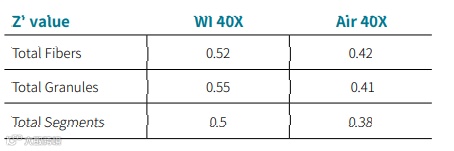 表 3 .与空气镜相比,水镜可以提高图像质量,获得更高的Z’值。