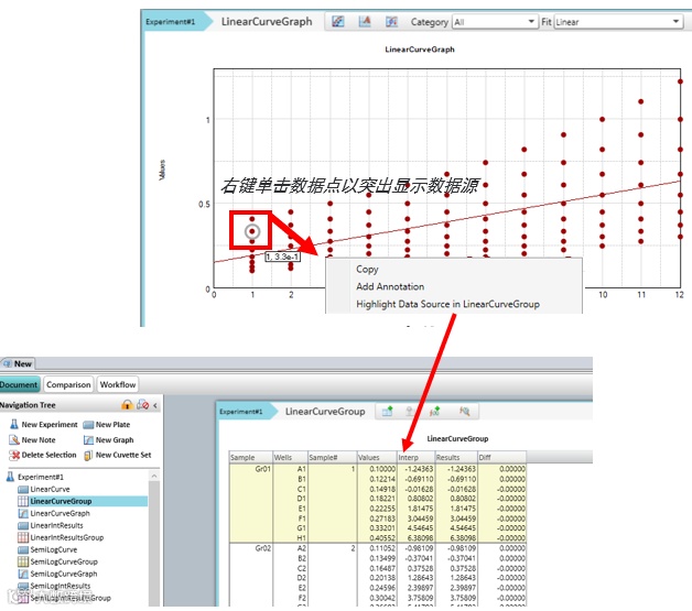 新增数据点显示功能,标曲图上选择数据点后软件自动识别分组中数据,方便查找异常值。