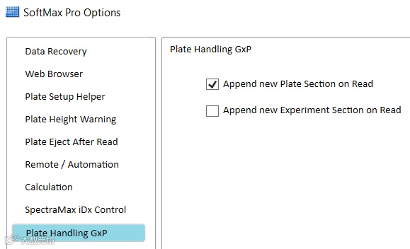 7.2 GxP 版本还可以设置重复读板后新建 Plate/Expt,防止覆盖数据。这样,在有数据的 Plate 中,再次点击 Read,软件会自动新建 Plate/Expt 用于存储新数据。
