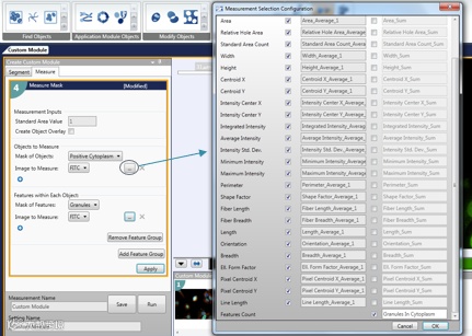 Mask 的识别是需要软件的算法来实现的,一般 mask 的识别需要 3 个参数去定义:信号与背景荧光强度的差值、信号的最大宽度、最小宽度。对于需要去除特定干扰、复杂的实验分析或者是明场的分析,我们除了用 AI 加持的 IN Carta 软件帮助我们分析外,还可以借助 MetaXpress 分析软件中的 CME 来完成目标区域的分割圈选及分析参数选择。