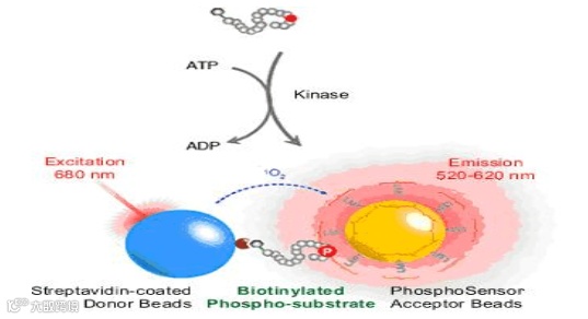 蛋白激酶检测:激酶有活性的情况下,底物被磷酸化,拉近了供体和受体的距离,产生光信号。