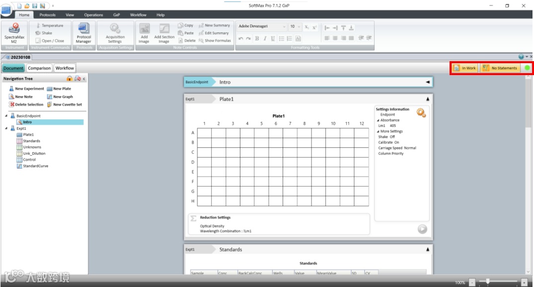 针对这项最新要求 SoftMax Pro 7.1.2 GxP 软件新增了数据文件状态显示(如下图),在数据库中和打开数据时都会显示当前文件所处的生命周期状态。