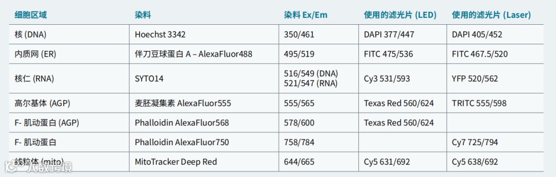 表 1 用于 Cell Painting 实验的染料和