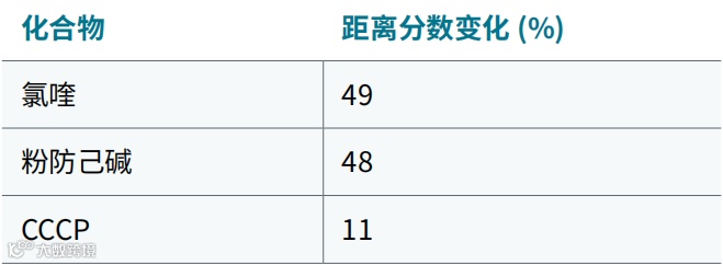 2. 在四个复孔中,以 7 个数据点 1:3 系列稀释和合适的对照品对 11 种化合物进行了测试。使用的化合 物 :Ca-074-Me、CCCP、氯喹、细胞松弛素 D、依托泊苷、拉春库林 B、雷帕霉素、鱼藤酮、十字孢碱、紫杉醇、粉防己碱。