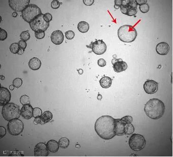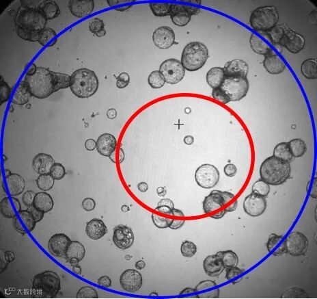 对于细胞球相互靠近,无法准确判别单个细胞球的问题,可以在软件中对细胞球边界进行圈选(箭头指示的蓝色部分)