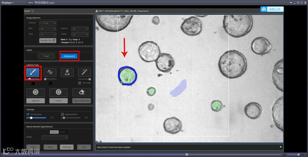 针对背景和目标灰度值接近,不好设阈值的问题,我们可以通过软件圈选足够多的细胞球,训练软件分析目标多维参数,而不是单一依靠灰度值做判别。