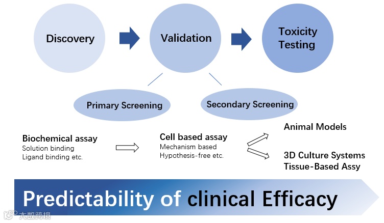 药物开发的流程(如图)一般包含了药物发现,验证及毒性测试。在药物验证的过程中,传统的体外筛选模型通常是建立在 2D 细胞水平,但是单层培养的细胞不能准确的模拟内源的生化过程和疾病模型,这种差异会导致大多数的候选药物在下游的临床试验中失败,预测新药的临床反应有限。