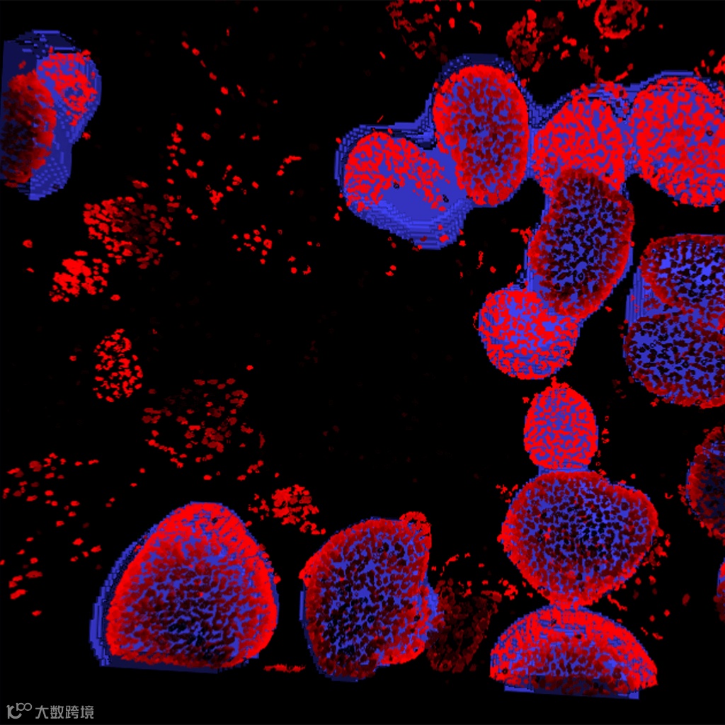 此外,可以确定和测定每个类器官中的单个细胞、细胞核或细胞器。可以对活细胞和死细胞或有特异性标记物的细胞进行计数,同时还能确定各个对象的体积及它们之间的距离。可以计算每个类器官的数值,或计算每个孔的平均数值。