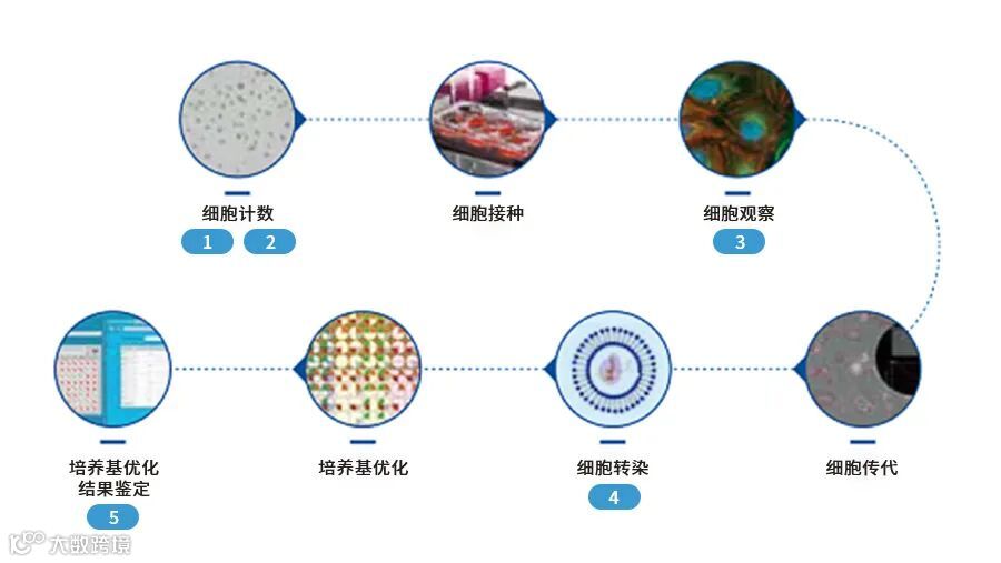 细胞培养是细胞株开发的基础,无论是细胞转染,培养基优化,还是抗体表达检测等实验都在细胞培养的基础上完成。细胞培养是一个长流程,精细,耗费时间和人力的流程,定期的细胞计数接种,细胞换液,细胞转染等繁琐的实验对工作人员的挑战极大,且在高通量的人工操作中易带入污染而导致细胞培养及筛选的失败。高通量、标准化、自动化的细胞培养能帮助我们在获得更准确的结果的同时加速细胞株开发进度。