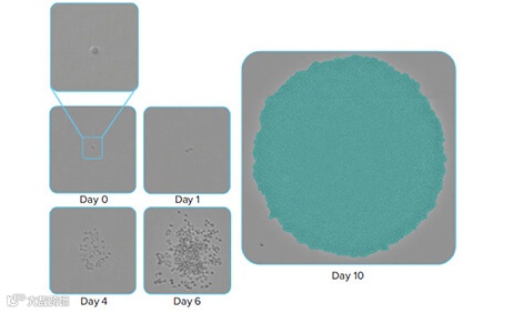 正如克隆生长实验所见,通过温和的分离维持细胞活性,并使用无菌的一次性单向分离槽防止交叉污染。