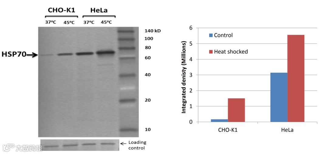 当 CHO 和 HeLa 细胞暴露于热休克处理时, HSP 70 蛋白含量增加