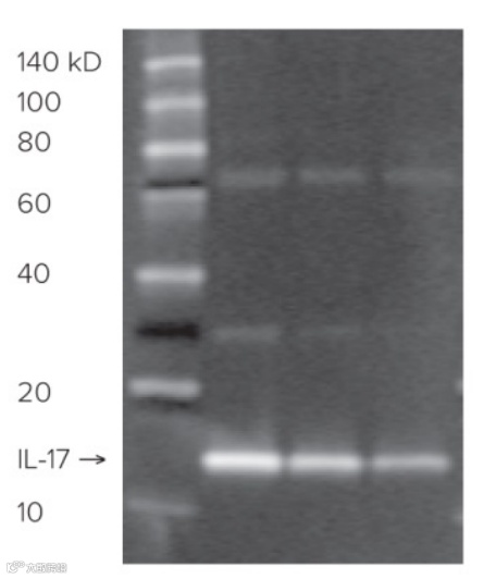利用 ScanLater 蛋白 Ladder 估算 IL-17 的分子量,