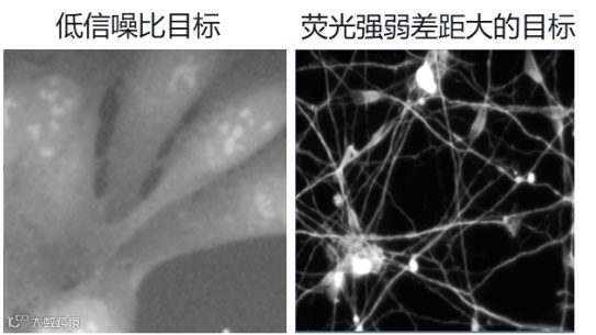 荧光很弱,信噪比低的轴突部分,很难识别出来;