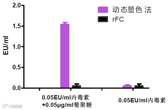 图 2 当葡聚糖存在时,LAL 显色法和 rFC 法反应特异性比较。