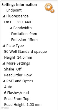 激发/发射波长设置为 380/440nm,PMT Gain 设置成 Automatic,顶读。以 i3x 为例,酶标仪读板设置如下图所示。