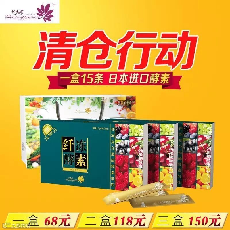 即日起至4月底花若昔果冻酵素要清仓啦!价值298元的果冻酵素清仓价:一盒68元/两盒118元/3盒150元,还包邮!