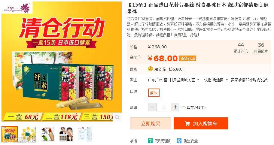找到果冻酵素进行下单,一盒68元/两盒118元/3盒150元。