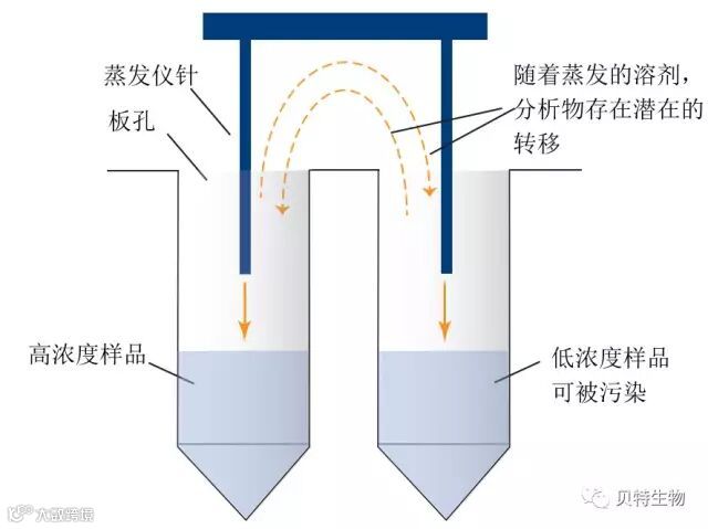 在蒸发过程中的“热点”串扰,导致高浓度样品从板孔转移到低浓度板孔的机制,这表现为假阳性,而非真正数据。