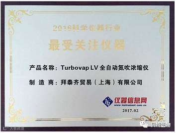 近日TurboVap® LV溶剂蒸发仪荣获第十一届ACCSI2017中国客户关注排行榜最高奖。此奖旨在颁发给全年排行榜最感兴趣的仪器,凭借客户在线点击和访问科学仪器网站instrument.com.cn得到。