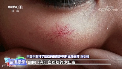 临床上肝掌和蜘蛛痣常常是并存的,在肝病患者的面部、颈部、胸部和肩部,经常出现周围有血丝状的小红点,像红色的小蜘蛛一样。