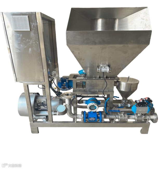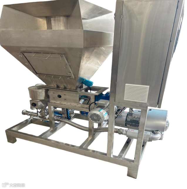 粉末计量及气流输送系统主要任务是让粉末状凝聚剂以恒定的速度从螺旋喂料器出来,然后以气流传输方式输送到溶解系统的喷湿式分散头中。该系统主要由下列设备组成:螺旋喂料器、鼓风机、预热式接收漏斗、文丘里管