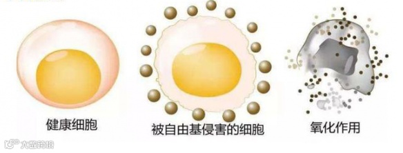 研究发现,氧自由基的化学性质是很活跃的,能够攻击细胞膜上的脂肪酸产生过氧化物,这些物质毒性很强,它会侵害体内的核酸、蛋白质等等而引起一系列的细胞破坏作用。