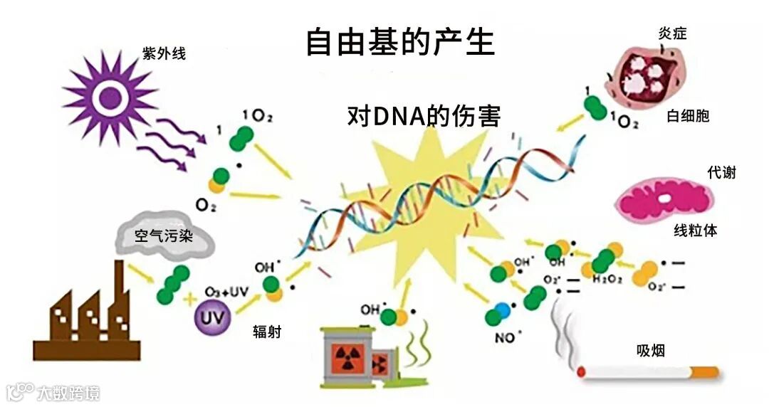氧原子本是稳定的双原子结构,当人体受紫外线、熬夜、外伤、中毒或者是大手术流血过多等重创的时候,组织处于缺氧状态,能量代谢发生障碍,细胞色素氧化酶无力将氧还原成水,氧原子便会被夺去一个电子,由无害的氧变成具有杀伤力的活性氧自由基。
