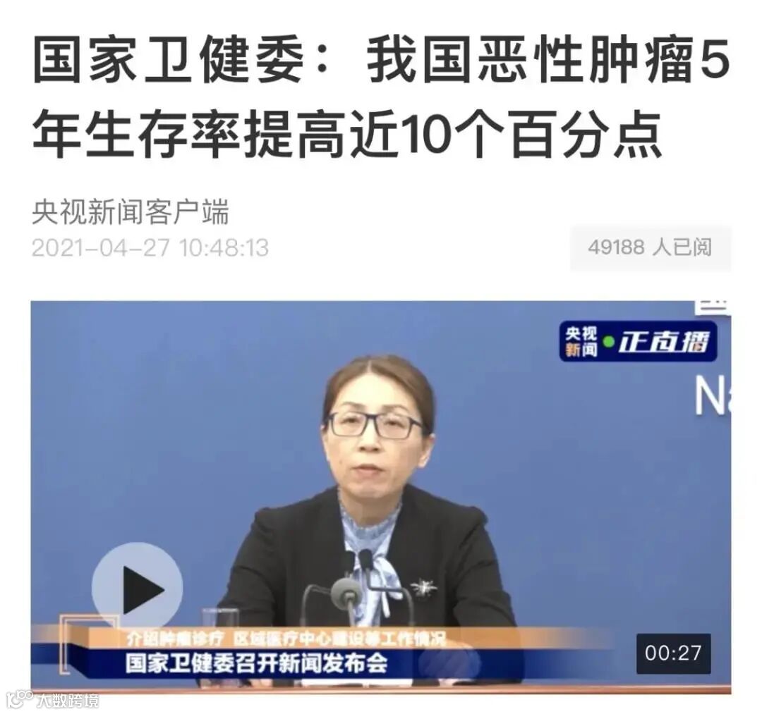 国家卫生健康委医政医管局局长焦雅辉在会上公布了 2020 年我国的发病十大癌症,并且介绍说随着我国医疗质量和诊疗能力的提升,恶性肿瘤的 5 年生存率已经从 10 年前的 30.9% 提升到目前的 40.5%,提高了近 10个百分点。