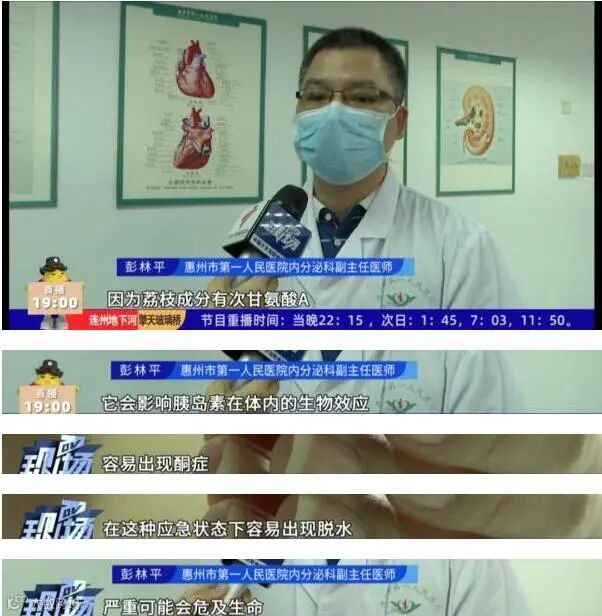 黄女士被确诊为糖尿病酮症,这次确诊糖尿病酮症,罪魁祸首就是那一斤荔枝!据医生介绍,患者平时属于血糖控制不佳的人群,一次性吃下太多荔枝,会出现果糖不耐受,出现糖代谢紊乱情况。经过一个星期的住院治疗,黄女士的各项指数才恢复正常。