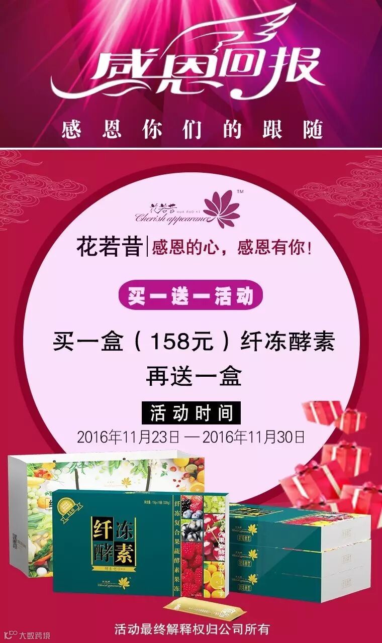 从现在起(11月23日——11月30日)只要在“花之若昔”微商城下单酵素即可买一送一!