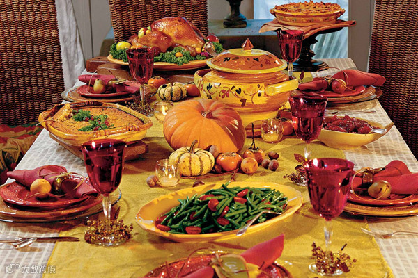 感恩节庆祝模式许多年来从未改变。丰盛的家宴早在几个月之前就开始着手准备。人们在餐桌上可以吃到苹果、桔子、栗子、胡桃和葡萄,还有葡萄干布丁、碎肉馅饼、各种其他食物以及红莓苔汁和鲜果汁,其中最妙和最吸引人的大菜是烤火鸡(roastturkey)和南瓜馅饼(pumpkinpie),这些菜一直是感恩节中最富于传统和最受人喜爱的食品。