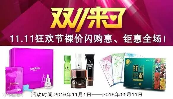活动时间:2016年11月1日—11月11日(即日起到双11)